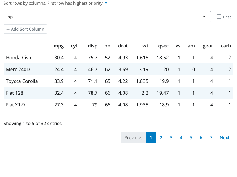 Add columns using the “+” button and remove them using the “-” button. Toggle between ascending and descending order for each column independently.
