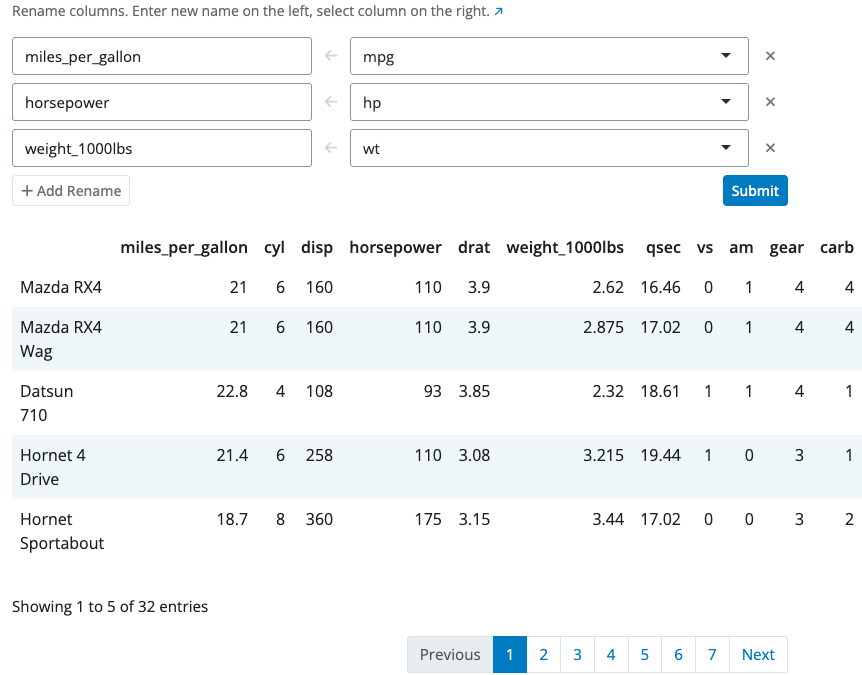 The block validates that you don’t rename the same column twice and ensures column names don’t conflict with existing names.
