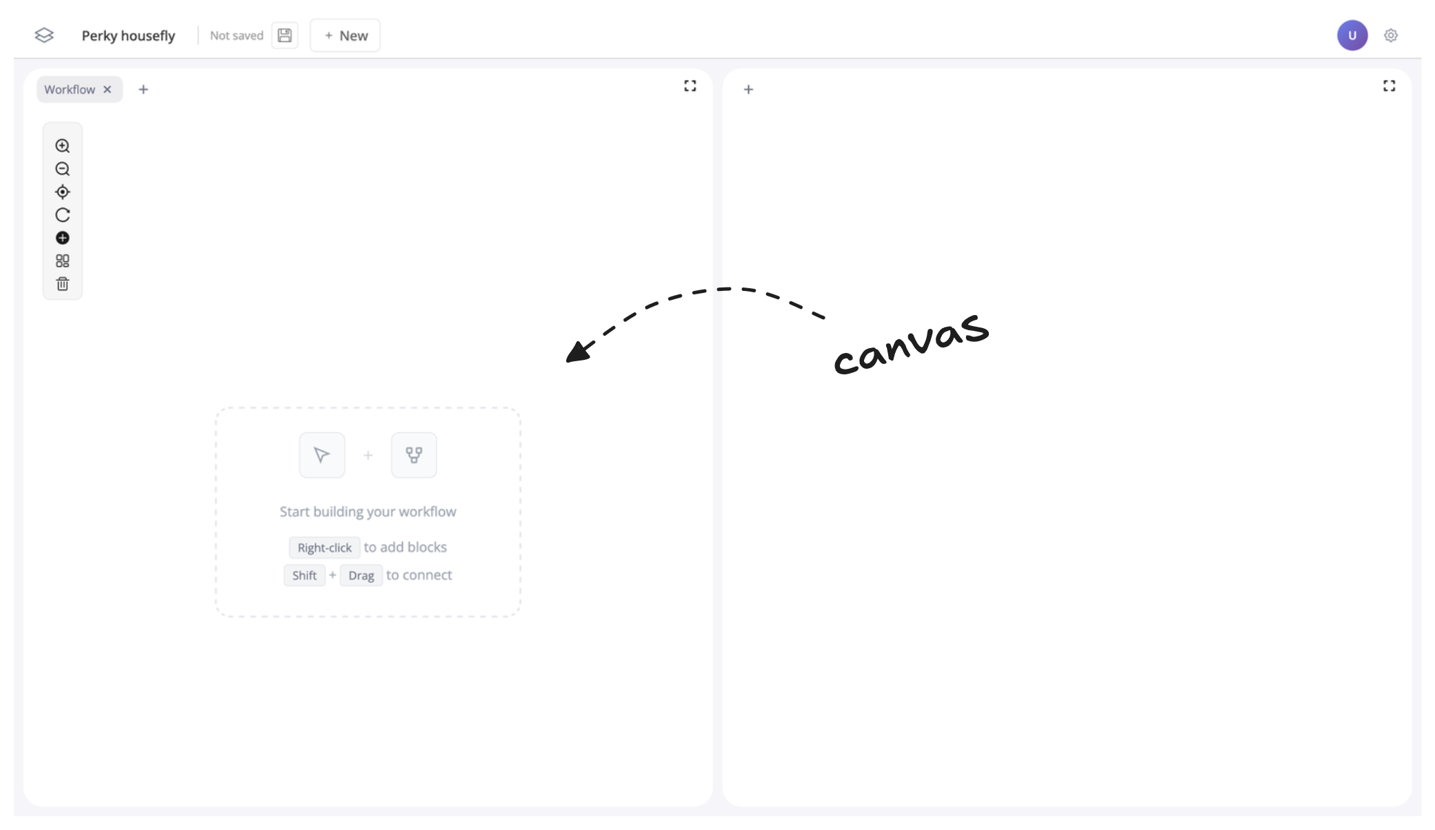 Each empty blockr app starts with a blank canvas: